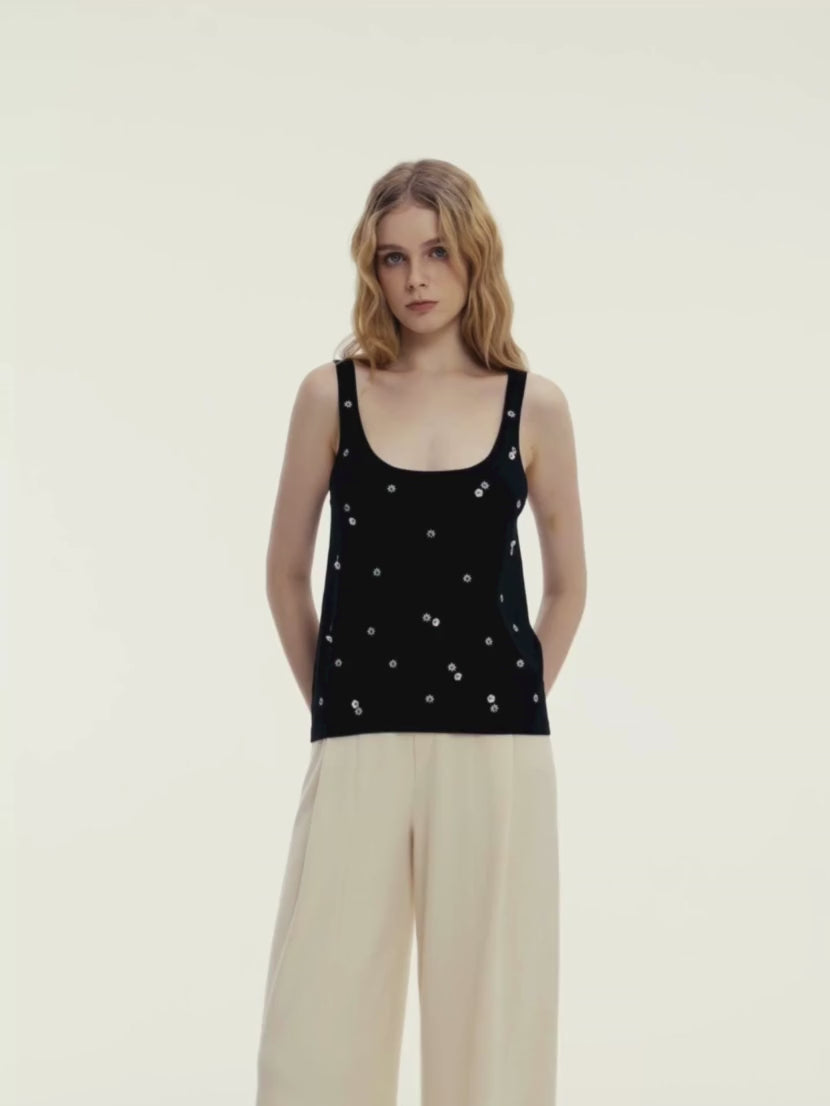 EMBROIDERED U-NECK VEST